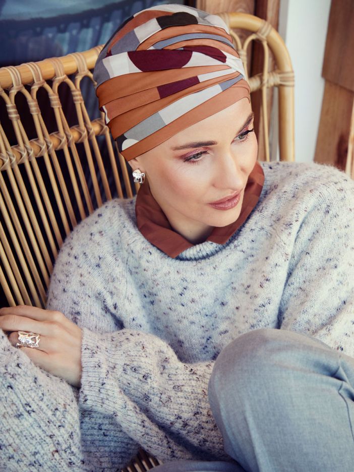 Ein moderner und eleganter Turban, der sehr einfach aufzusetzen und zu stylen ist. Der Shanti Turban ist eine schöne Wahl mit seinen plissierten Lagen, die fast kein Styling erfordern, sobald man ihn aufgesetzt hat. Der Turban hat einen eleganten Faltenwurf und ist sowohl vorne als auch hinten mit schönen Details versehen.