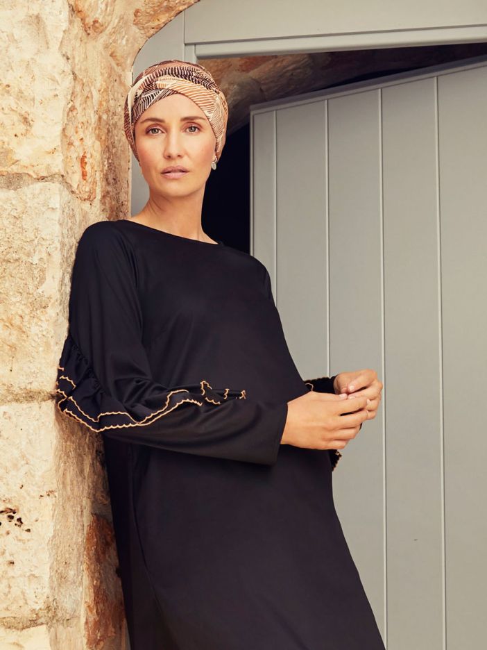 Der Shakti-Turban ist eines unserer beliebtesten Modelle aus der Christine-Serie. Der Turban sitzt sehr gut und ist ein leichtes Modell mit einem teilweise befestigten Stirnband, das auf verschiedene Weise gestaltet werden kann und für viel Volumen sorgt. Das Stirnband lässt sich vorne zu einem Knoten oder einem Dutt formen, was dem Turban einen modernen und raffinierten Anstrich verleiht. Dieser Shanti ist aus dem feinsten Caretech®-Bambus-Viskose-Material hergestellt, das sich unglaublich weich, ja fast wie Seide anfühlt. Es ist nicht nur ein bequemes und elastisches Material, Bambus ist auch dafür bekannt, dass es atmungsaktiv und wärmeregulierend ist und mehr Feuchtigkeit aufnehmen kann als Baumwolle.