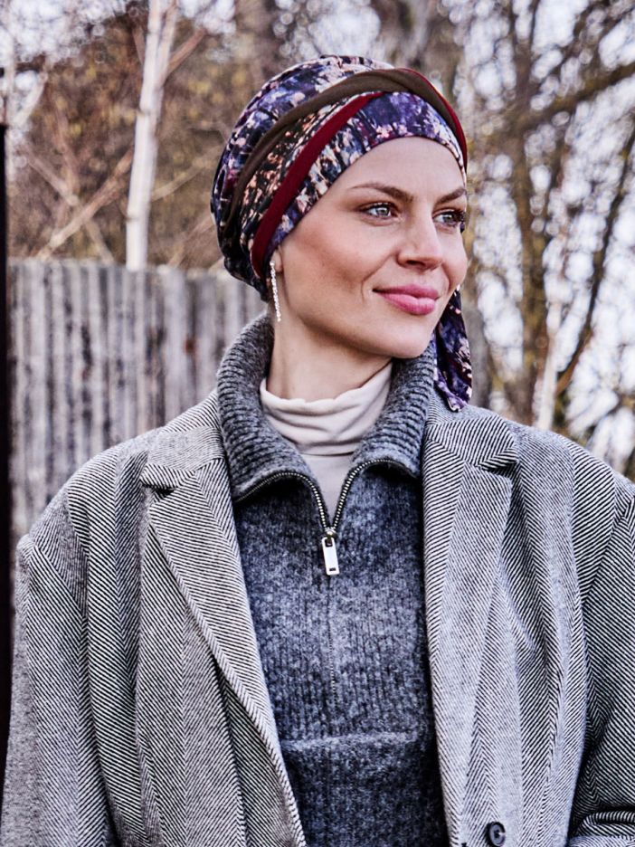 Tipp: Sie können Ihren HocBeatrice-Turban ganz bequem vor dem Aufsetzen binden und stylen.