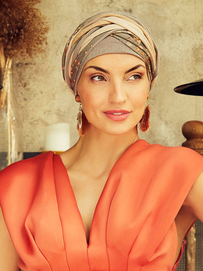 HocScarlett Turban Set | Taupe & Golden Mix